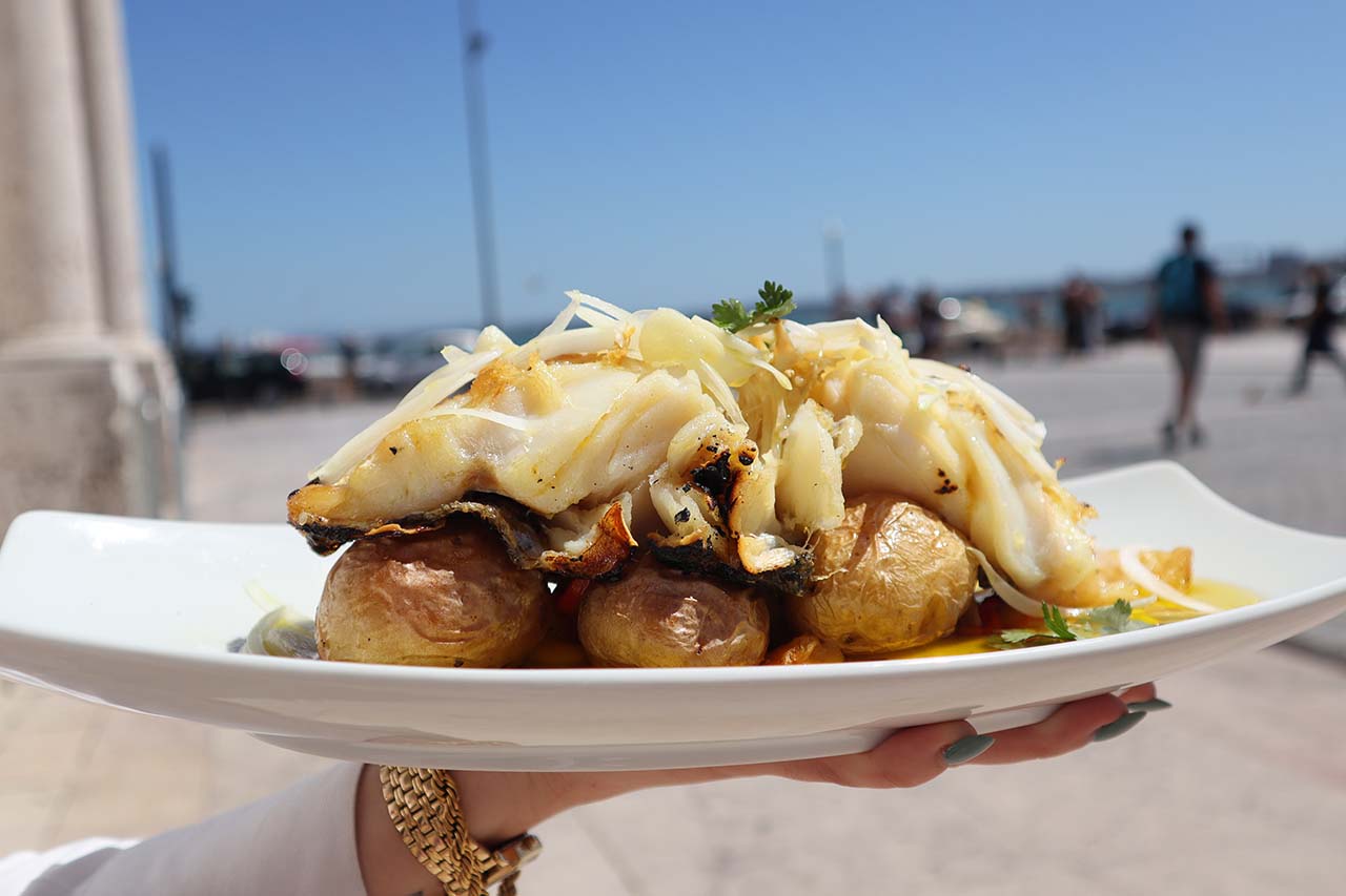 "A good atmosphere with a view of the river and over the commerce square, a wonderful and well presented octopus and a posta de bacalhau for 2 very good presentation and tasty. I highly recommend it"